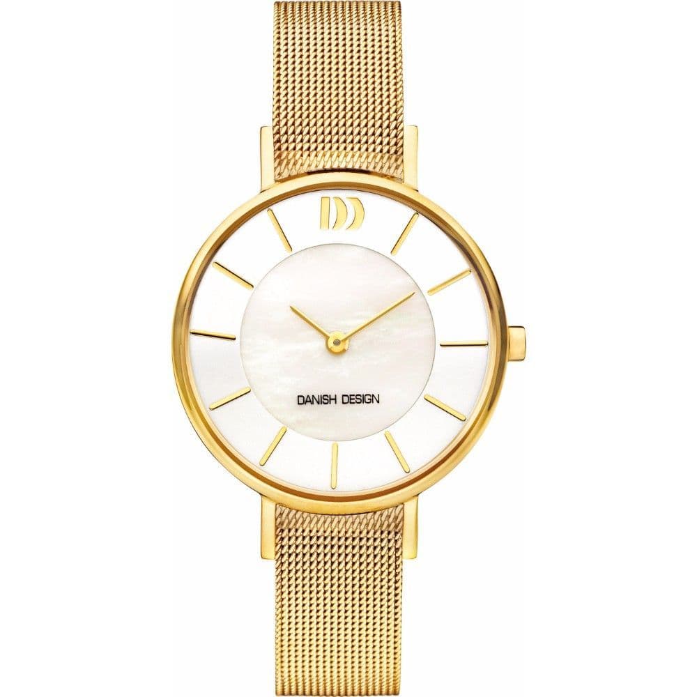 This Danish Design Stainless Steel Ladies Watch IV05Q1167 features a Gold Stainless Steel case with Mother of Pearl Dial. The watch also features Mineral Crystal Glass and IP Gold Stainless Steel Mesh Strap. Timepieces Direct are authorised Danish Design stockists. All our watches are supplied with a 2 year warranty and we offer free UK delivery.
