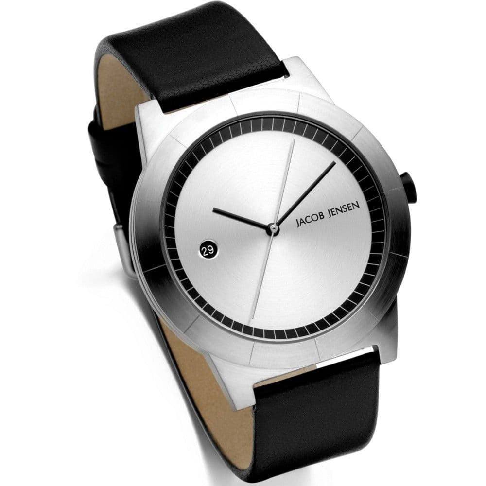 The Jacob Jensen 140 Ascent Gents Watch features a stainless steel case with a silver dial. The watch also features Sapphire Crystal glass and a black leather strap. Timepieces Direct are authorised Jacob Jensen stockists. These watches are supplied with a 2 year warranty and we offer free UK delivery.The Jacob Jensen 140 Specifications
